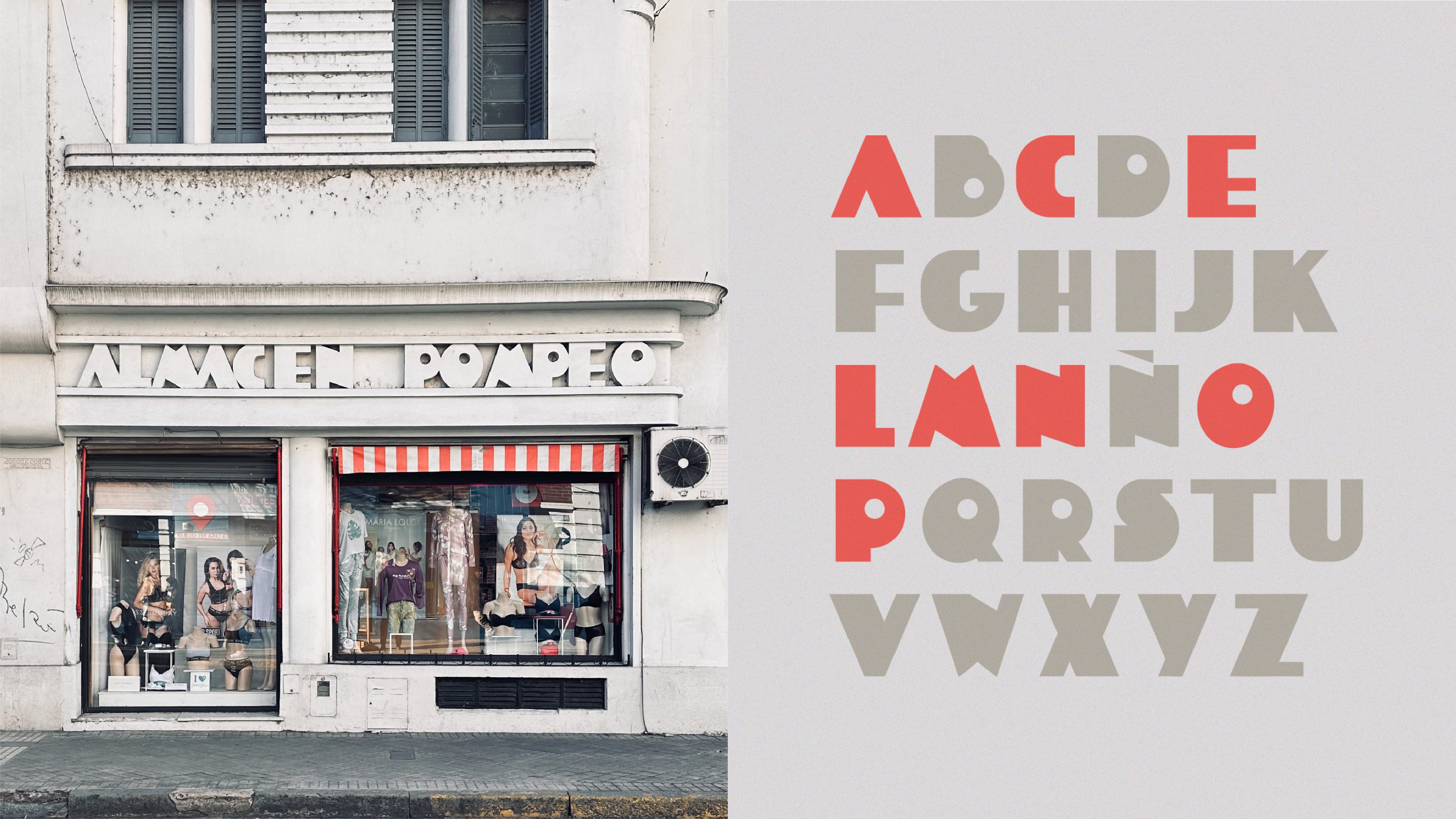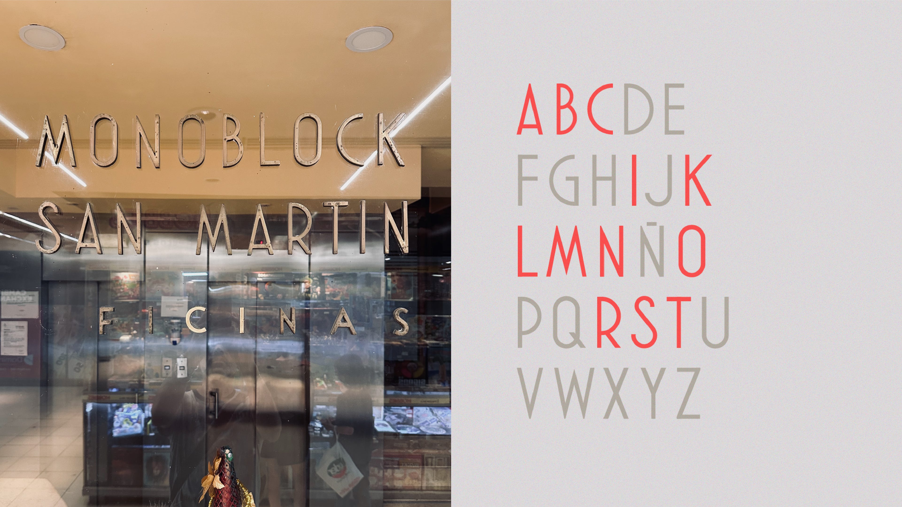 Este interés hizo que durante muchos años me dedicara a fotografiar textos y señales gráficas de la ciudad, quizás esperando el momento adecuado para iniciar este proyecto que ya existía en mi cabeza. La empresa tenía su dificultad, siempre pensé que el dibujo de tipografías era un territorio reservado a unos pocos, un oficio casi de relojería que requería mucho estudio, atención al detalle y disciplina. Sin embargo, a comienzos de 2025, algo se acomodó. Las pistas ya estaban ahí y el proyecto empezó a tomar forma.